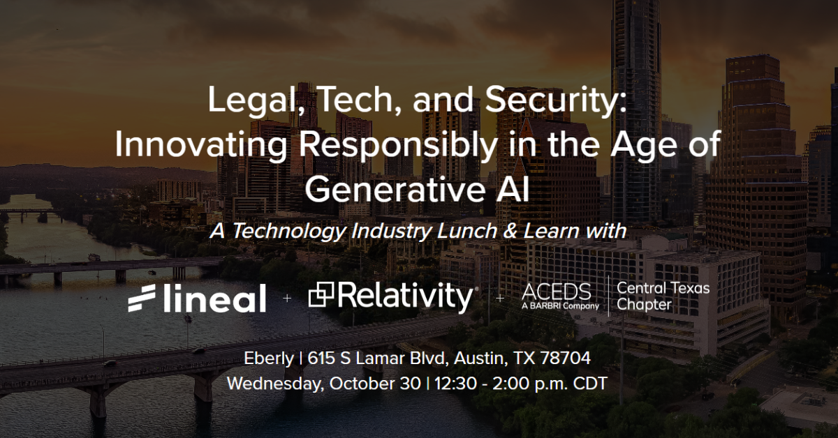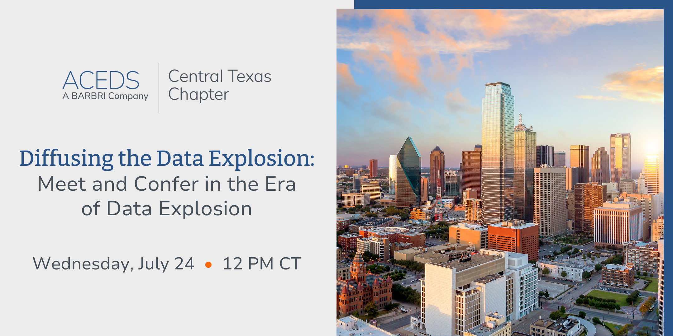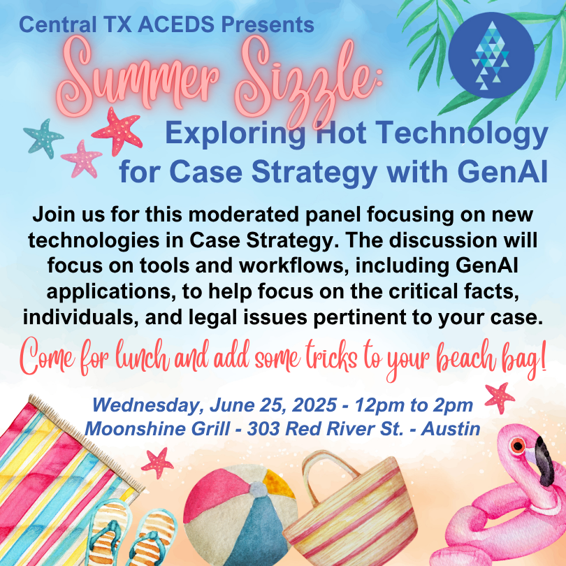 Moonshine Grill 303 Red River Street, Austin, TX 78701, Austin, TX, USGet ready to dive into the world of cutting-edge technology and AI strategies at Summer Sizzle - it's going to be hot!REGISTER AT THIS LINKJoin us for an engaging lunchtime panel hosted by Central TX ACEDS, A&M, and Relativity, where legal professionals will explore cutting-edge technologies shaping the future of case strategy.As litigation teams face […]